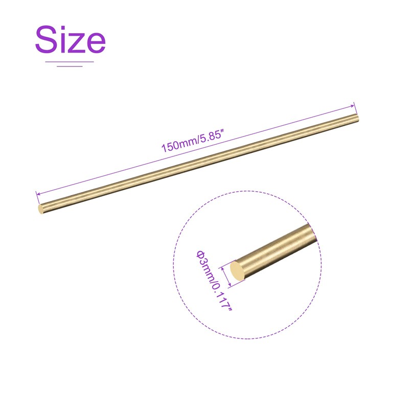 - Size: Diameter: 3 mm; Length: 150 mm; Package Content: 4 pcs brass bars