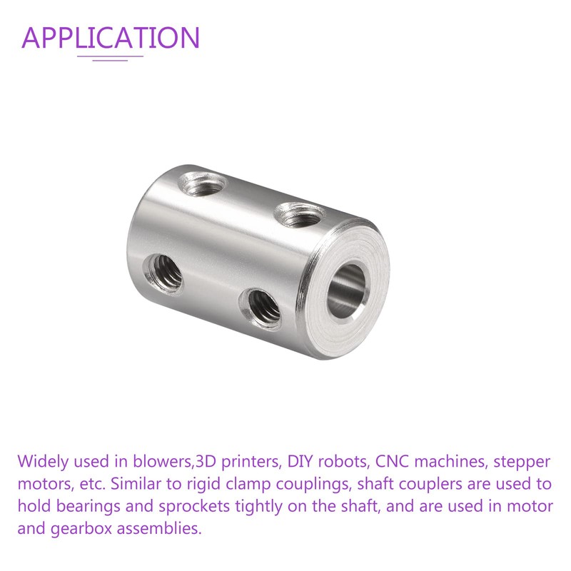 - Application: Widely used in blower machine, 3D printer, DIY robot, CNC machine, stepping motor etc. Like rigid clamp couplings, shaft couplers are used to securely hold bearings and sprockets to the shaft and are used in motor and gearbox assemblies