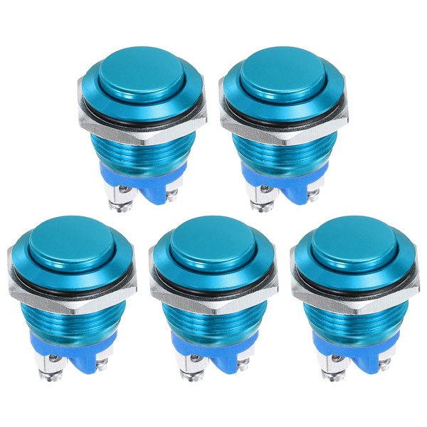 DMiotech 5 Pcs 19mm / 3/4" Push Button Switch, IP66 1NO 0-250V 5A Momentary Latching Push Button Starter Light Switch Self-reset, Aluminum Alloy High Head Blue