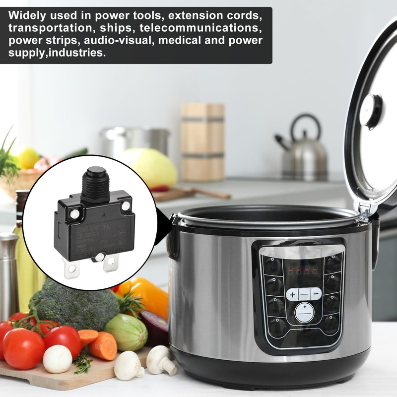 - FUNCTION:Circuit overload protectors can play the role of over current protection and short circuit protection, protecting the power circuit from overheating due to overload. The manual reset design allows feedback after being disconnected for a period of time. The reset button of the switch automatically cuts off the circuit when the load exceeds the rated current, effectively protecting the circuit.