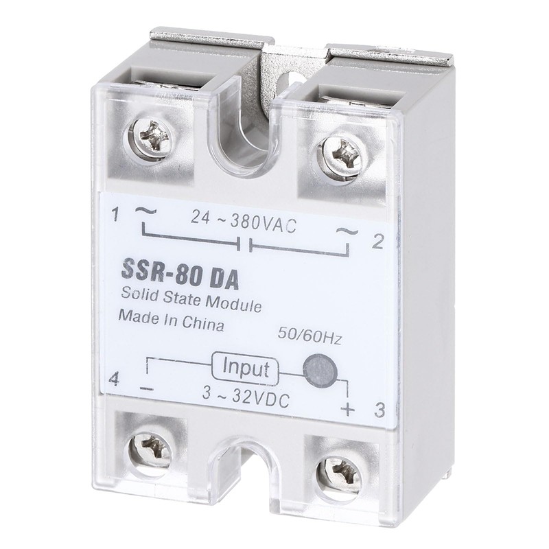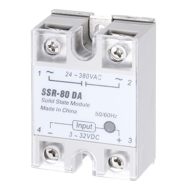 - SIZE: 62 x 45 x 23.5 mm / 2.4 x 1.8 x 1 Inch (L x W x H); Switching Voltage: 3-32V DC; Current Rating: 80A; Style: SSR-80DA