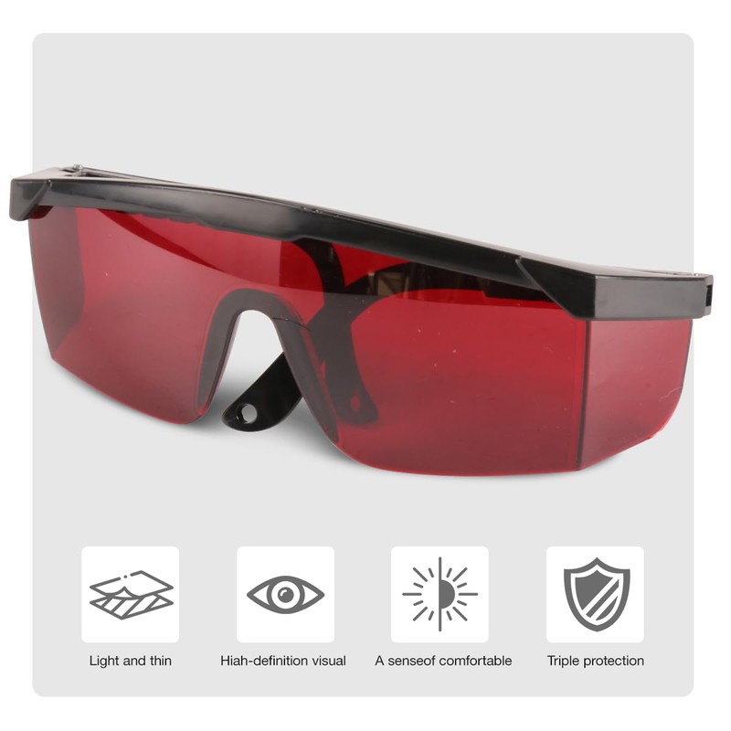 - Reduces Eye Strain: The LG01R glasses effectively filter out ambient light, reducing eye strain and fatigue caused by bright or flashing red laser beams. Perfect for long hours of work with laser tools.