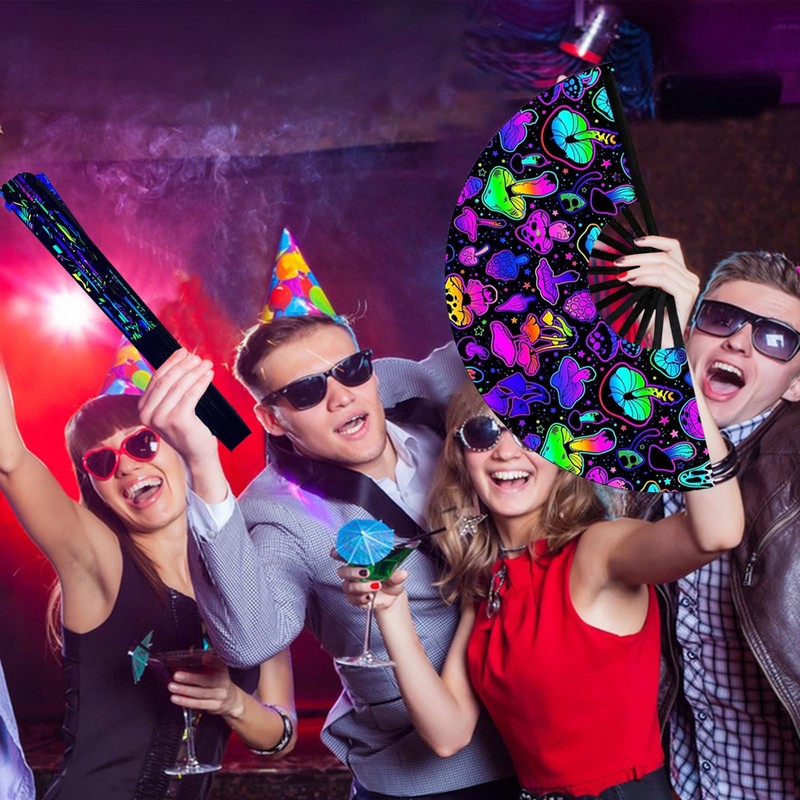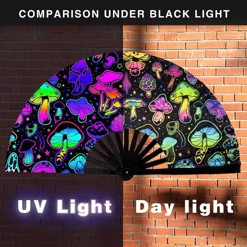 dmjuncong dmjuncong Large Folding Hand Rave Fan,Clack Handheld Fan with Fan bag,for Music Festivals,Carnival,Rainbow Outfits,Disco Party,Neon Party, Glow Party Decorations Supplies.Mushrooms