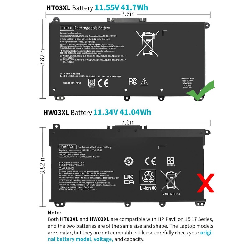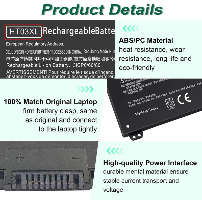 • Compatible with: HP HT03XL Battery, for HP Pavilion 14-CE 14-CF 14-CK 14-cm 14-DF 14-MA 14Q-CS 14Q-CY 14S-CF 14S-CR 15-CS 15-CW 15-DA 15-DB 15G-DR 15T-DA 15T-DB 17-by 17-CA Series 14-CE0000 14-CE0020TX 14-CE0025TX 14-CE0027TU 14-CE0028TX 14-CE0029TX 14-CE0030TX 14-CE0034TX 14-CE1058WM 14-CE0068ST 14-CE1056WM 14-CE0064ST 14-CE0006DX 14-CF0000 14-CF0014DX 14-CF1015CL 14-CM0000 14-CM0020NR 14-CM0012NR 14Q-CS0000 14Q-CS0006TU 15-CR0000 15-CR0087CL 15-CR0052OD 15-CR0055OD 15-CR0037WM 15-CR0051CL 15-CR0091MS 15-CR0010NR