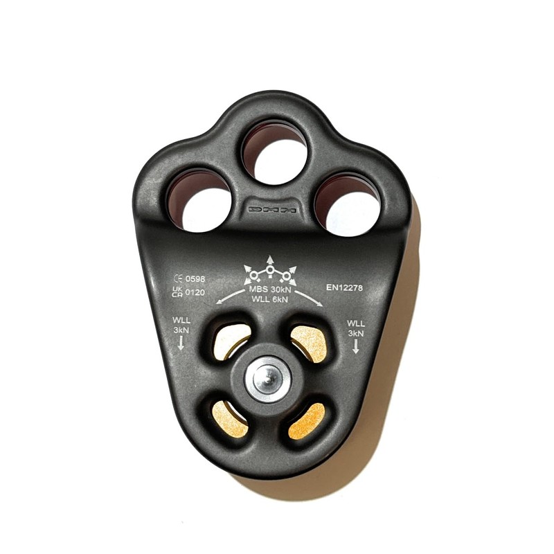 - Side plate shape allows an autoblock knot to function when the rope approaches the sides as well as at the bottom of the pulley