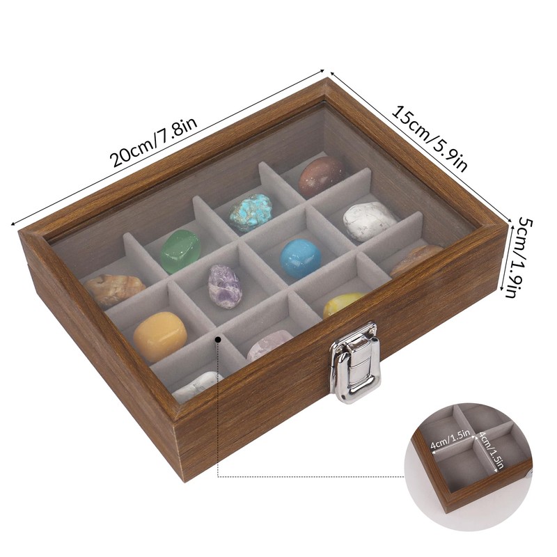 • Functional Design: Measuring 20x15x5cm with 12 small grids (4x4cm each), this display case seamlessly blends style and practicality. Ideal for organising small rocks, gemstones, crystal or jewellery, it keeps your collection both visible and neatly arranged