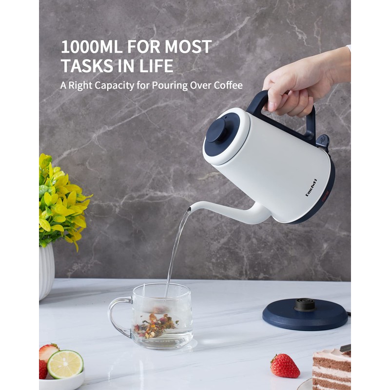 DmofwHi Gooseneck Electric Kettle(1.0L),1000W Electric Tea Kettle of 304 Stainless Steel,Auto Shut off,Coffee Kettle for Pour Over and Tea -White