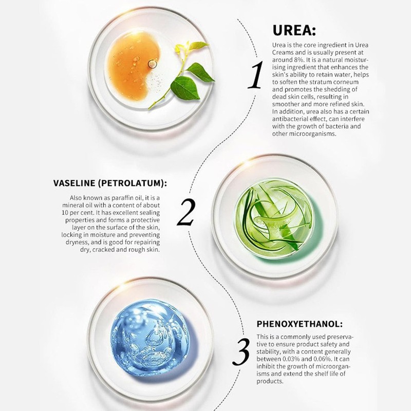 - 【SUITABLE FOR MULTIPLE AREAS】- Highly effective repair cream for cracked heels, heels, ankles, elbows, legs, toenails and knees. Cracked Heels Cream is suitable for all skin types. Urea Foot Cream softens and nourishes thick heels and gently exfoliates dead skin cells for a perfect skin care experience.