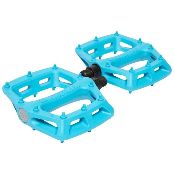 A Nylon evolution of DMR's V12 body design. Equipped with the same concave footprint and narrow profile DMR pedals are known for, whilst spinning on a Dual DU bushing system to provide the value of a plastic pedal with a thoughtful approach to increased durability.Chromoly axleDual DU bushing systemFull length 6mm off-road pins for added gripItem SpecificationsPedal TypePlatformColorBluePedal Spindle9/16"Pedal Body MaterialPlasticDefined ColorBlueWeight327Spindle MaterialChromoly Steel