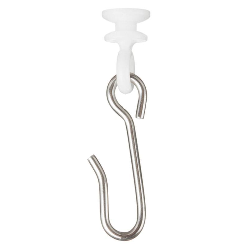 Button Carrier w/ Stainless steel hook provides a ready made accessory to hang curtains with pre-existing holes. Hook can be pinched closed with pliers. Strong plastic carrier that can be sewn directly to back of curtain or accept a variety of hooks. Compatible with RECMAR 32124, 42124, 52124 84003 84004 Curtain Tracks. Available with stainless steel hook as part 7124. Dimensions: 0.43" Wide x 0.72" Tall. Neck Diameter: 0.17". Loop Opening: 0.16"