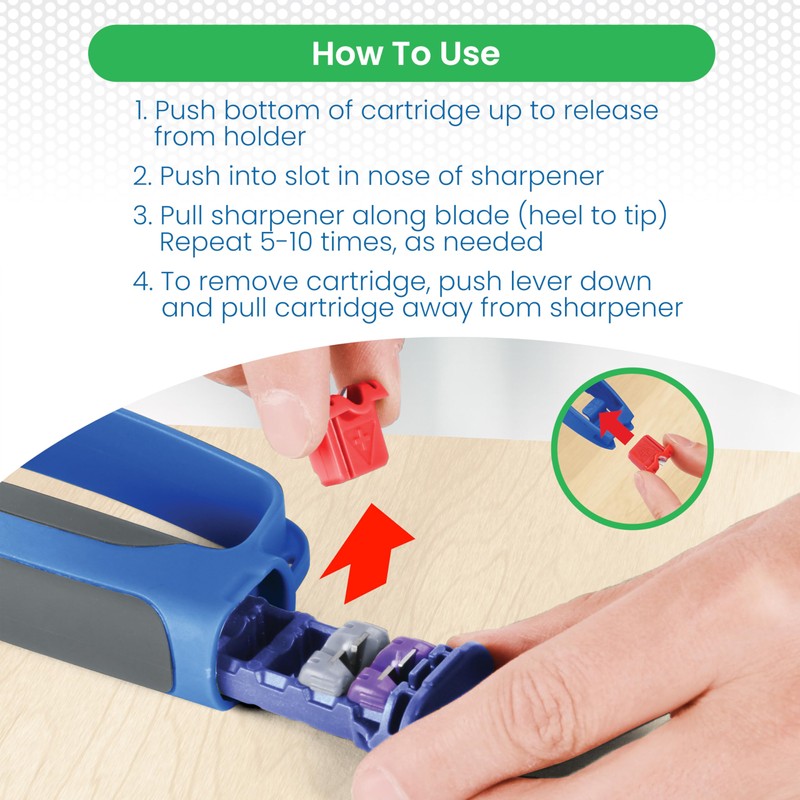 - Effortless To Use: With quick-change cartridges, the knife and scissor sharpener is a breeze to maintain. Great for home chefs, crafters, and professionals looking for reliable performance with every use