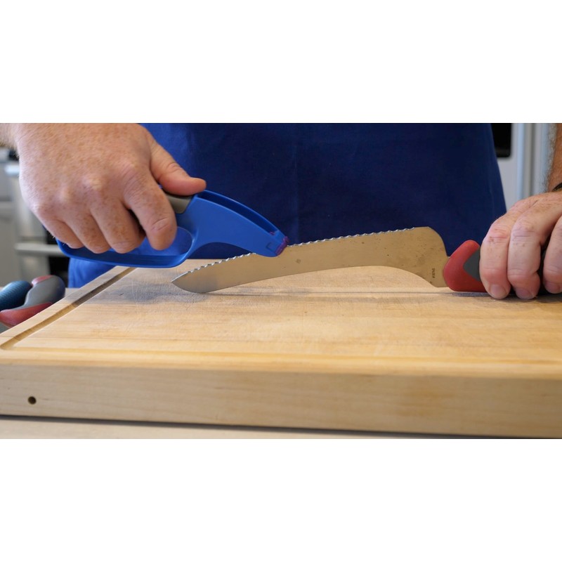 - Maximum Comfort & Control: Designed with an ergonomic handle and secure grip, this sharpener makes sharpening smooth and hassle-free. Perfect for sharpening straight and serrated knives and shears too!