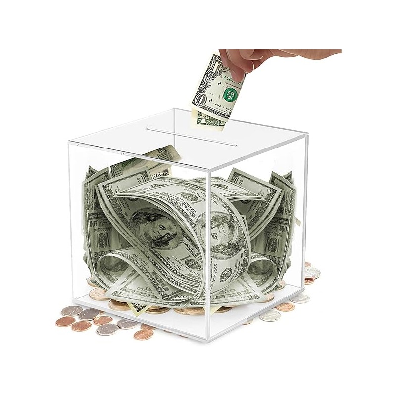 DMTINTA Clear Piggy Bank for Adults and Kids Transparent Piggy Bank for Adults Must Break to Open Acrylic Unopenable Piggy Bank to Help Budget and Save.5.9 * 5.9 * 5.9