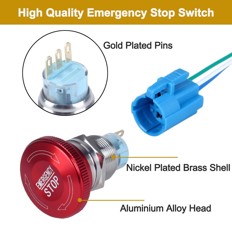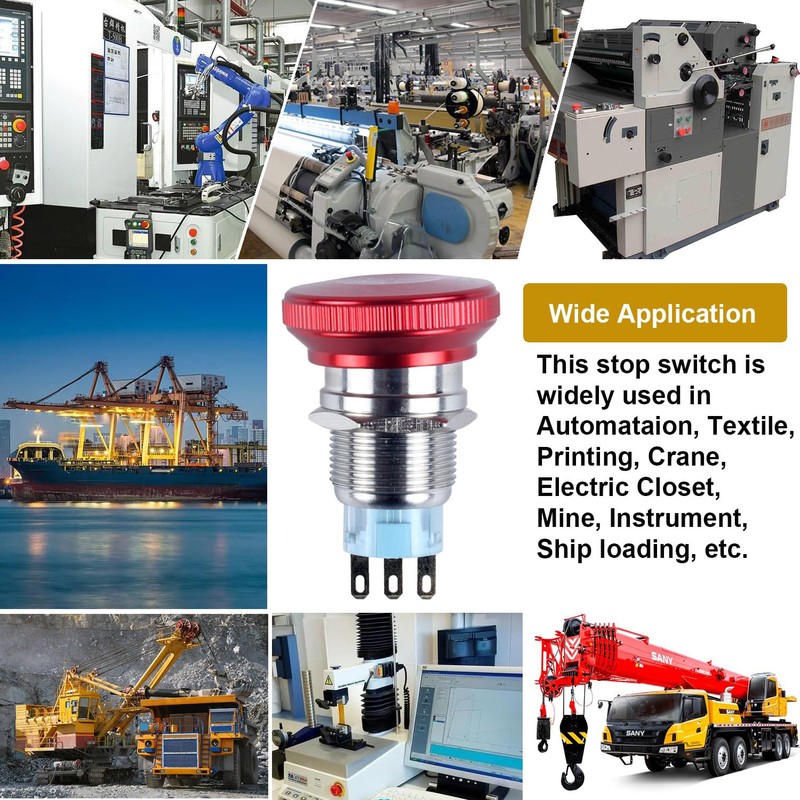 DMWD 1Pc 19mm Metal Latching Emergency Stop Push Button Switch 1NO 1NC Button...