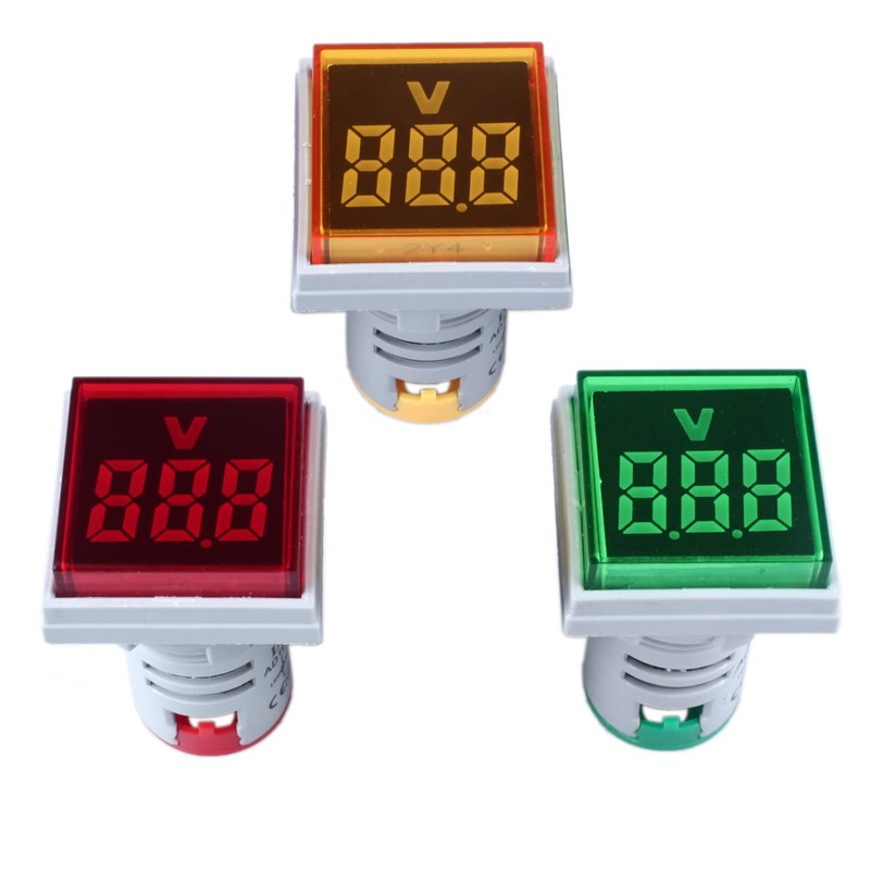 DMWD Voltage Meter Indicator AC50-500V 22mm Square LED Digital Display Voltmeter, 3PCS Panl Mount Voltage Tester for Home or industiral Equipment (Green Red Yellow)