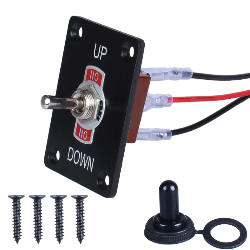 - Package Included: 1 x 3 position toggle switch, 1 x Up Down mounting plate, 1 x waterproof cap cover, 3 x Pre-wired cables, 4 x mounting screws.