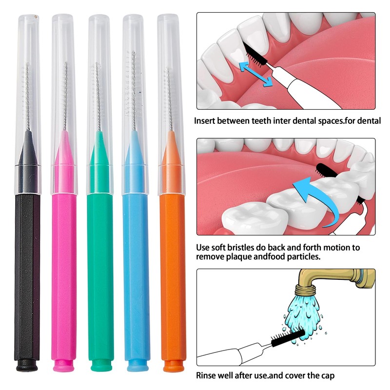 - 【Effective Teeth Cleaning】Braces brush head is soft and flexible, it can go deep into your tooth gaps and removes debris, prevents bad breath. These interdental brushes are made of nylon coated wire to keep your gum safe, reliable for oral cleaning.