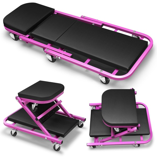 - ADVANCED DESIGN - This roller garage shop creeper with thick padded seat cushion will provide stability and comfort on the job. Unique design allows creeper to transform from a standard rolling creeper into a seat in seconds.