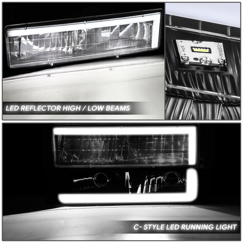 DNA MOTORING C Style LED DRL Headlight+Signal Lamps Set Compatible with 92-99 Chevy GMC C/K 1500 2500 Suburban Yukon,Black,HL-LB2-4P-C10-BK