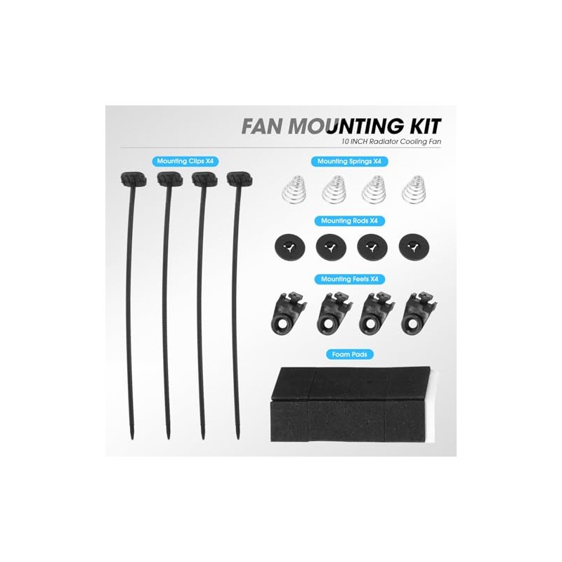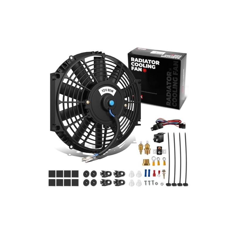 - Package Includes: 1 X Slim Electric Radiator Fan; 1 X Fan Mounting Kit; 1 X 12V Radiator Fan Relay Kit