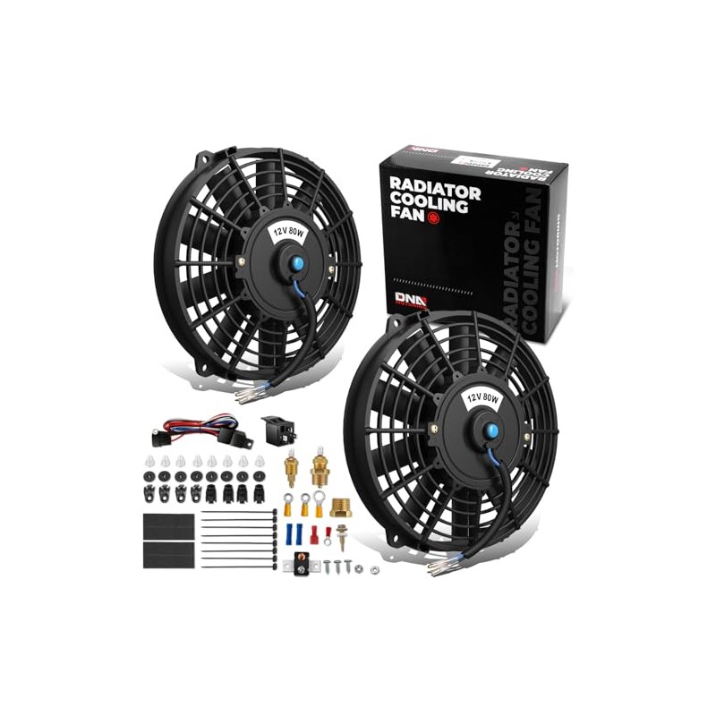 - Package Includes: 2 X Slim Electric Radiator Fan; 2 X Fan Mounting Kit; 1 X 12V Radiator Fan Relay Kit