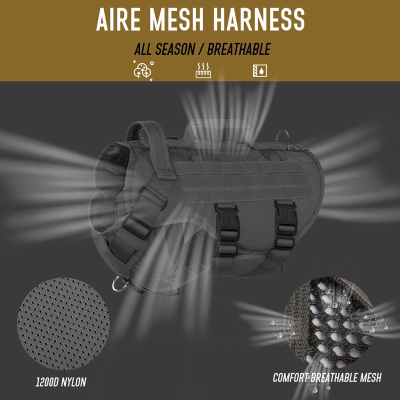 - [Breathable Air Mesh Design] - Built for all seasons, this mesh design combines breathability with a tactical style and durability. Made from rugged 1200D nylon, it resists dirt, water, and abrasion for long-lasting use.