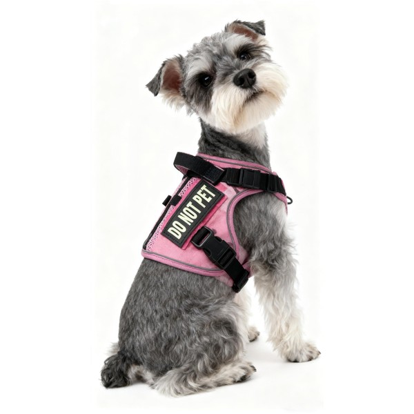 DNALLRINO Tactical Dog Harness for Small and Medium Breeds, Air Dog Vest No Pull with Reflective Do Not Pet Patches, Breathable Dog Molle Vests for Training Walking Hunting Camo Pink