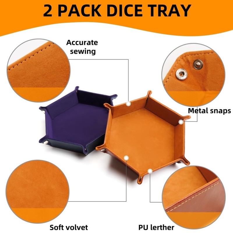 - 2 PACK PORTABLE DICE TRAYS: 2 Pack dice trays are made of thick PU leather, bring you more enjoyment while playing games. Easy to fold and unfold to carry to any where.