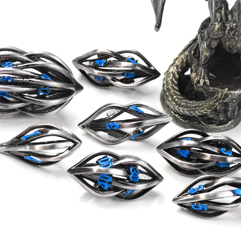 DND Dice Set Dungeons and Dragons Dice, D&D Dice 7PCS/Set, ZHOORQI Polyhedral Dice Set Metal Dice Set for Role Playing Games, Pathfinder, The Arcanum Dice Set for Table Games(GZ-Blue)