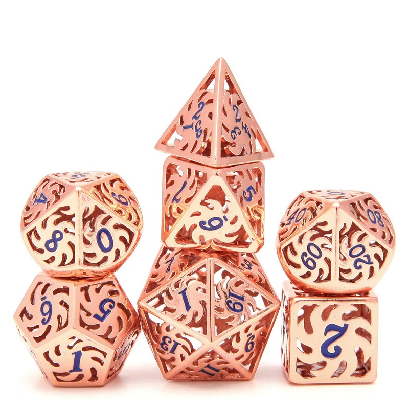 Metal pure copper material:High hardness but light weight, durable wear.Lighter weight:Dice net weight: 0.14 ounces (60 grams).It is.lighter than resin dice!!traditional solid metal dice about0.34 ounces )