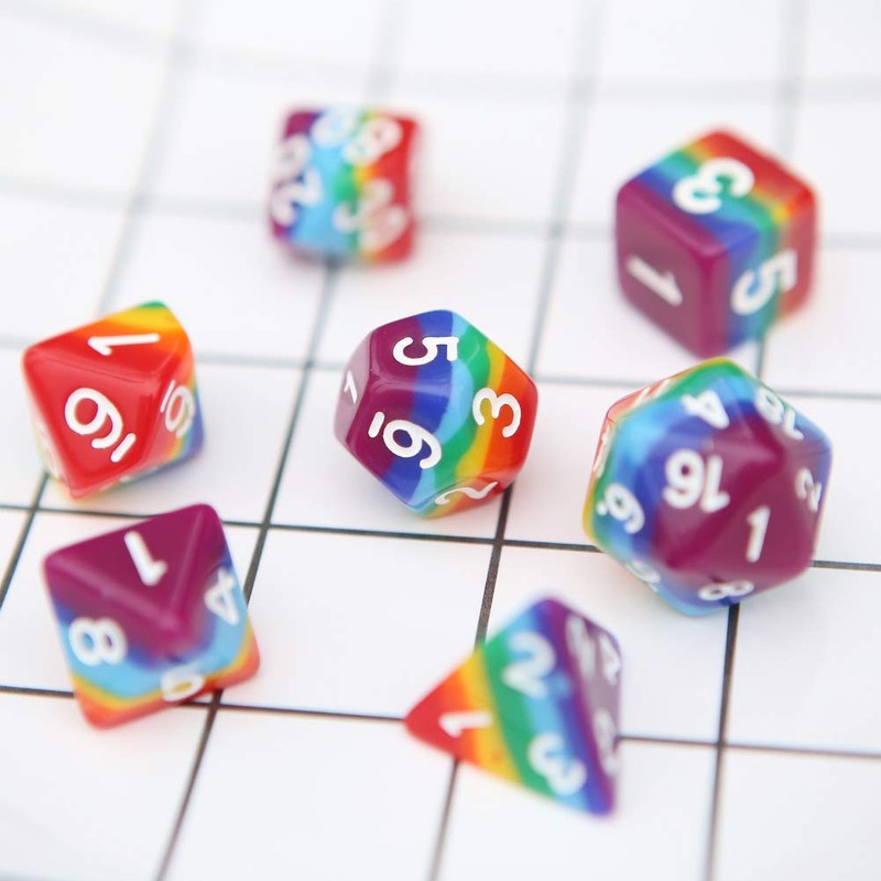 - Polyhedral dice sets: 1 x D20, 1 x D12, 2 x D10, 1 x D8, 1 x D6, 1 x D4 dice. 7 pieces in total. PREMIUM MATERIAL Made of high quality acrylic, this dice set is beautiful and soft, durable and sturdy.