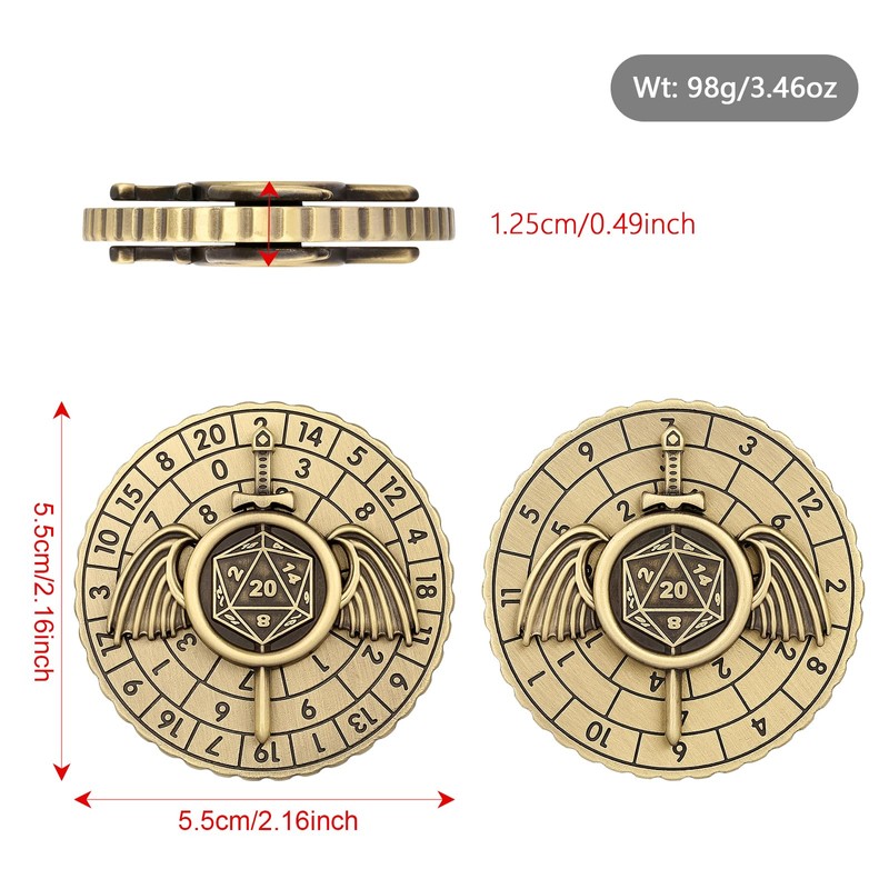 - Versatile accessories: the spinner has artfully designed fighter swords pattern; on each side there are three different points, namely D20, D10, D8 and D12, D6, D4