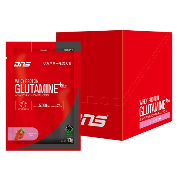 DNS プロテイン ホエイプロテイン グルタミンプラス (G+) ストロベリー風味 33g×10袋 グルタミン配合 水で飲める ホエイたんぱく質 筋トレ いちご 個包装