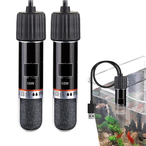DNSHAN 2PCS USB Aquarium Heater, 10 W Mini Aquarium Heating Rod with Thermostat, Thermostat Aquarium Turtle Heater, Submersible Heater Thermostat for Fish and Turtle Tank