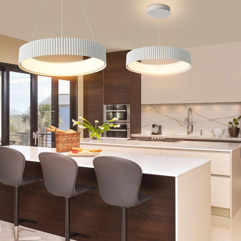 - 【Modern LED Pendant Light】: The Dnshjue 24.4" White LED chandelier features a ring luminous design, enhancing the lighting efficiency compared to ordinary luminous models. The acrylic soft luminous surface and inward/downward light create a brighter, more uniform lighting effect.Made from high-quality aluminum, metal, silicone resin, and acrylic, this chandelier adds a stylish touch to your home.
