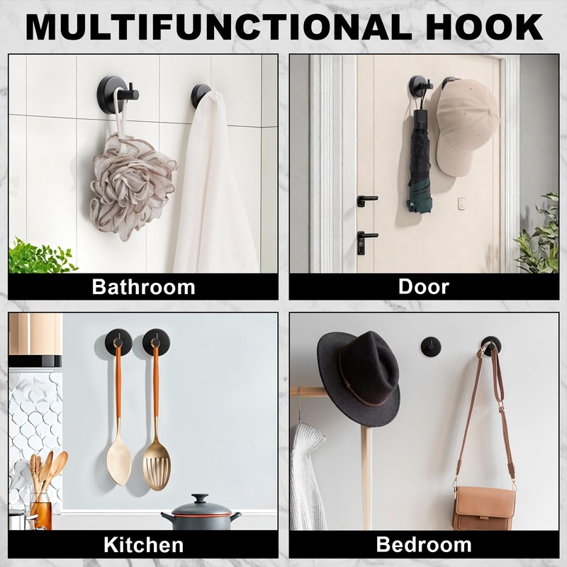 - 【Widely Used】The vacuum suction cup hook can be firmly adsorbed on smooth and non-porous surfaces such as shower glass doors, mirrors, glossy tiles, smooth plastic surfaces, windows, stainless steel, quartz, laminate, etc. Suitable for bathrooms, kitchens, living rooms, bedrooms, offices, etc. Note: Not suitable for dusty and uneven surfaces such as lime walls, painted walls, wallpaper, logs, etc.