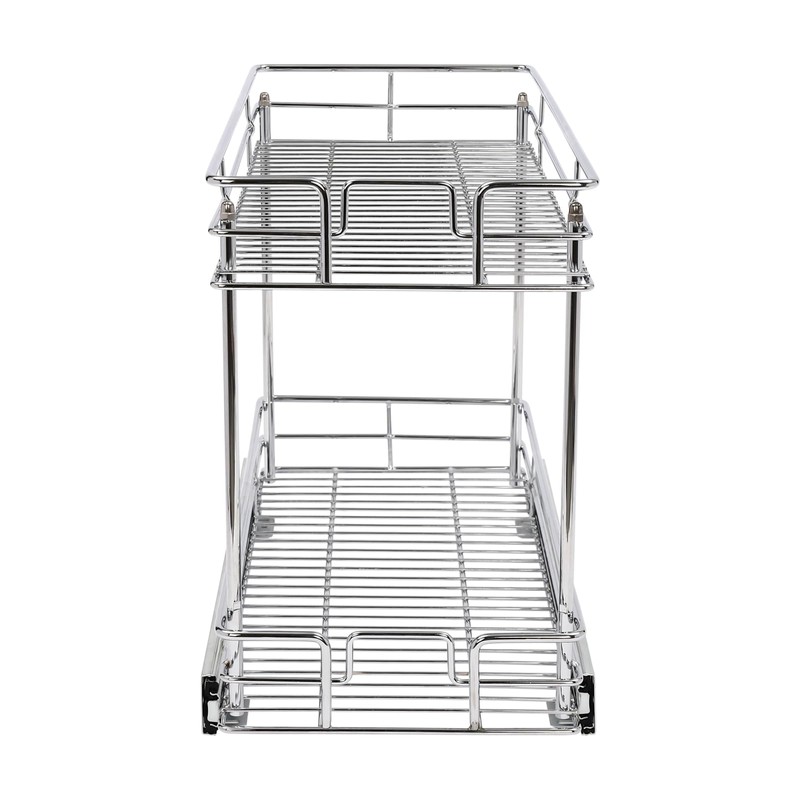 - 【Neat Storage】① The pull-out design also makes it easy for you to retrieve kitchen items. With two silent ball guides, this cabinet pull out shell can slide out smoothly, so you don't have to go deep into the cabinet when searching for what you need. ② The double-layer design provides you with enough space to neatly store bowls, spice bottles, plates, and plates, keeping your kitchen tidy. More importantly, a sufficiently high layer spacing allows you to easily store tall items.