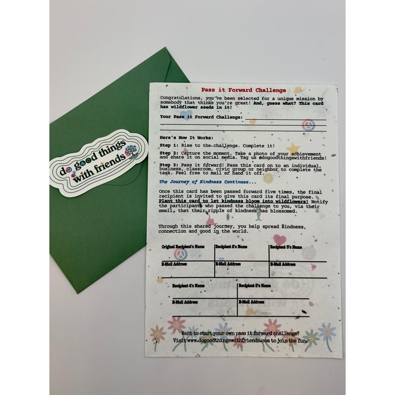 Do Good Things with Friends Plantable Seed Paper 'Pass It Forward' Kindness Card: Create Your Own – Share Random Acts of Kindness and Grow Wildflowers