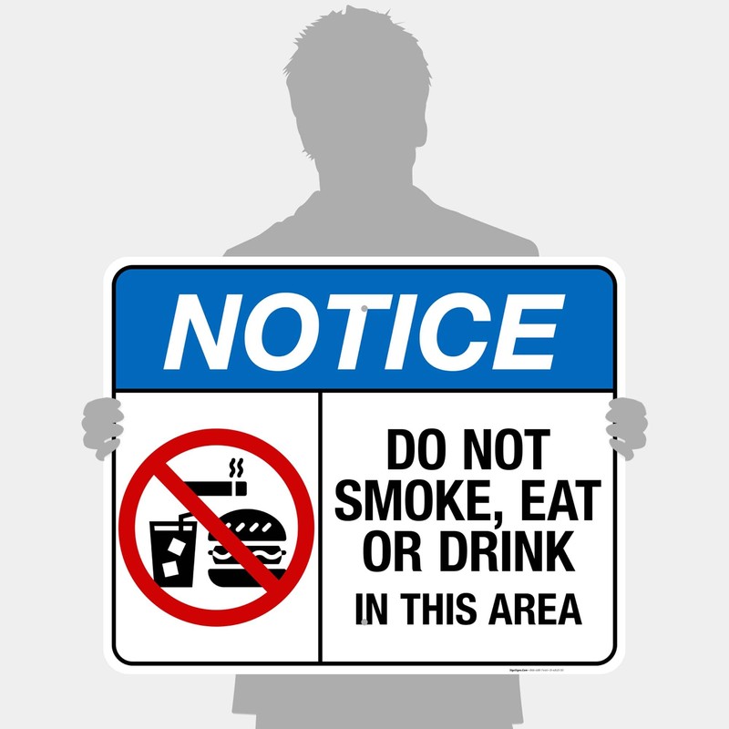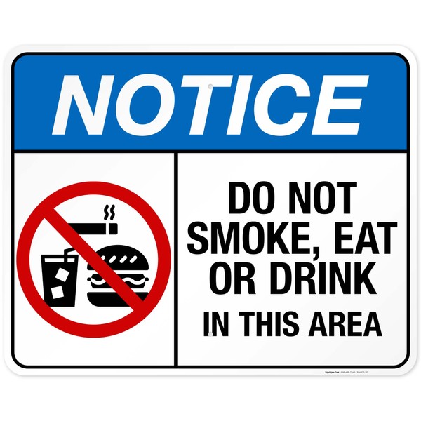 Do Not Smoke, Eat Or Drink in This Area Sign, ANSI Notice Sign, 24x30 Inches, Rust Free .063 Aluminum, Fade Resistant, Indoor/Outdoor Use, Made in USA
