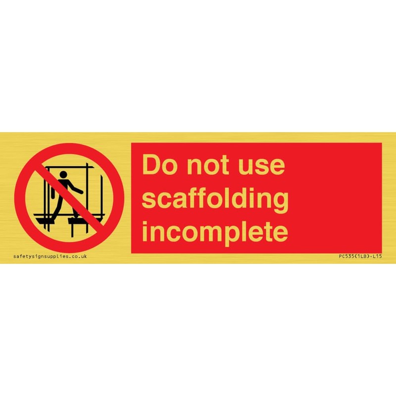 Do not use scaffolding incomplete sign 150mm x 50mm L15