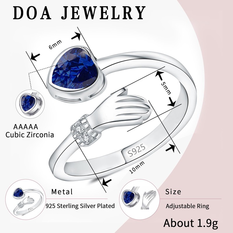 DOA Adjustable Sterling Silver Open Rings for Women, Hug September Birthstone Rings Women, Thumb Ring with Cubic Zirconia