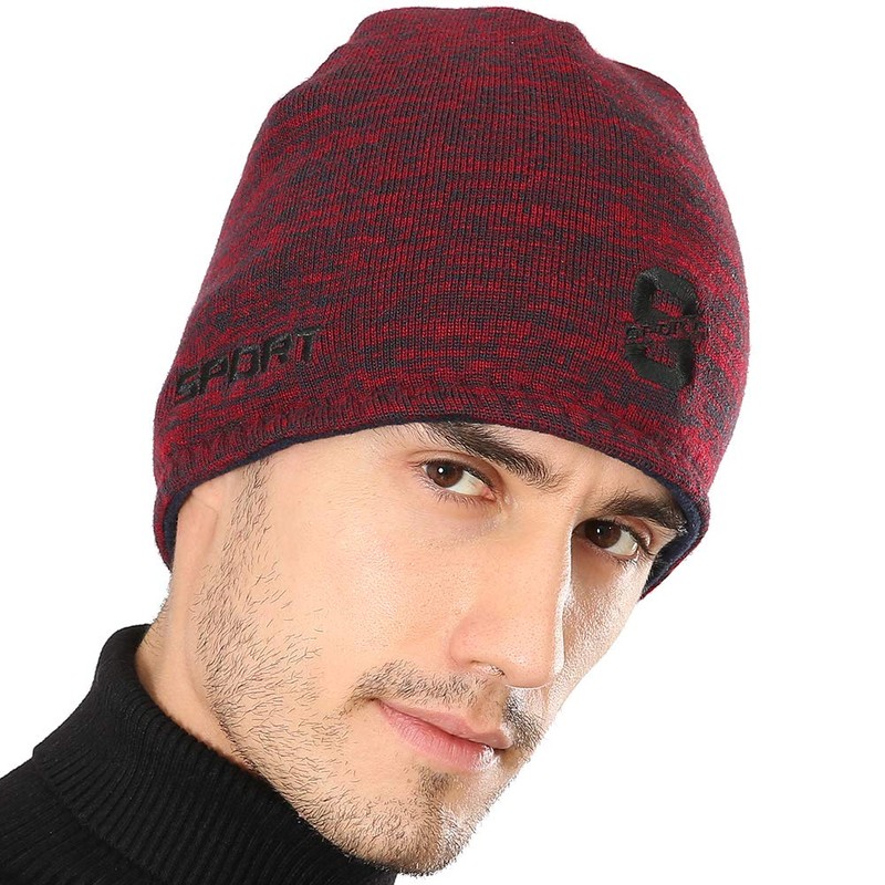 DOANNOTIUM - Gorro de Punto para Hombre, diseño de Calavera, Vino Rojo&Negro, Medium