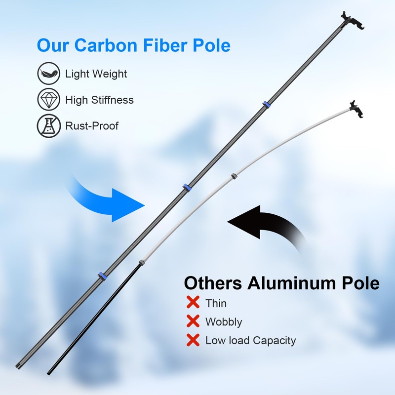 - Made of Carbon Fiber: The telescopic pole is made of carbon fiber material, which greatly reduces its weight while ensuring sufficient strength. Compared with other traditional aluminum pole, our light hanging extension pole is more convenient to use and has stronger corrosion resistance. The unique texture carbon fiber also enrich the stylish and modern look.