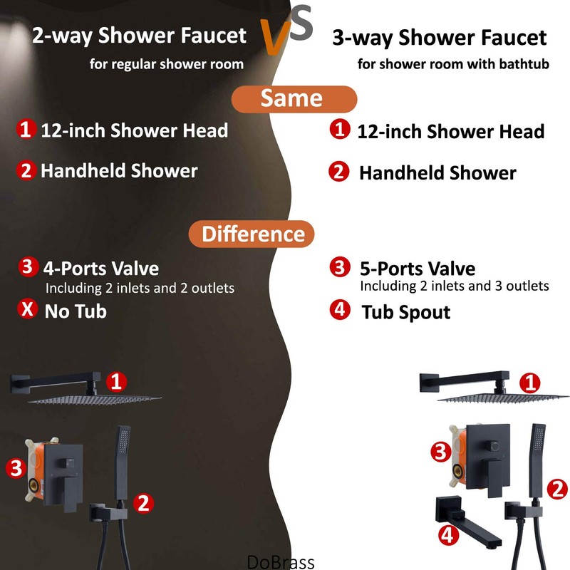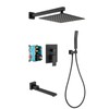 DoBrass Black Shower System with Tub Spout, Rainfall Shower Faucet Set Complete with Pre-embedded Valve, HandHeld Shower and 12-inch Shower Head, Wall Mounted
