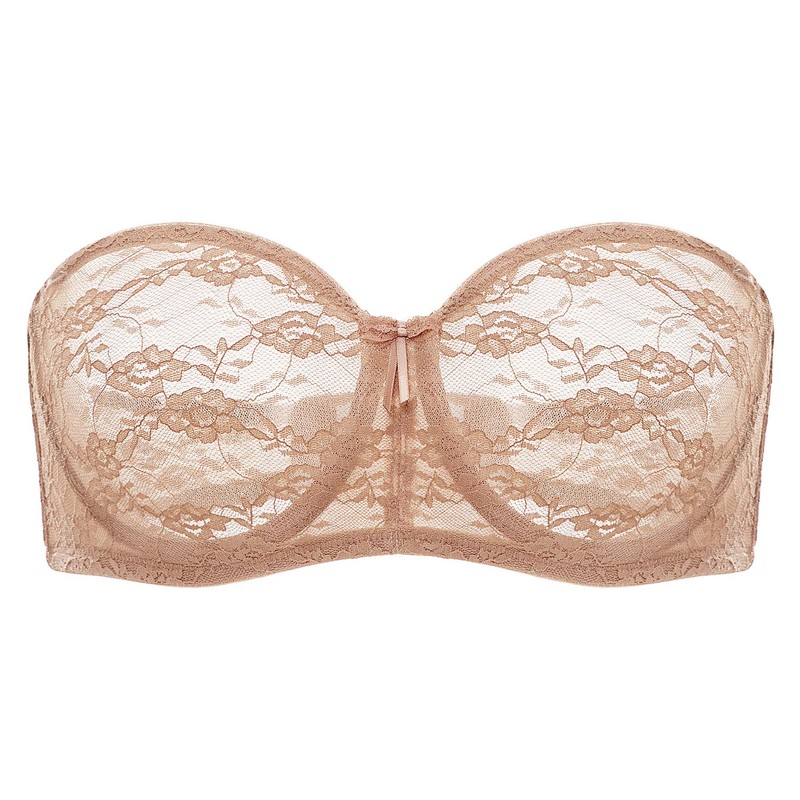 DOBREVA Women's Strapless Bra with Underwire Transparent Lace Dirndl Bandeau Bras with Transparent Straps, Natural