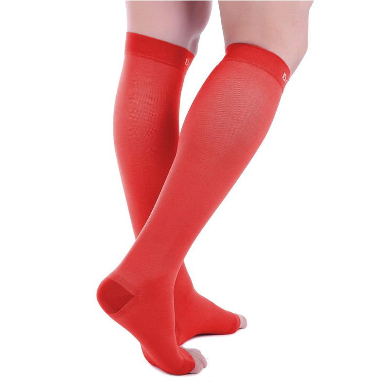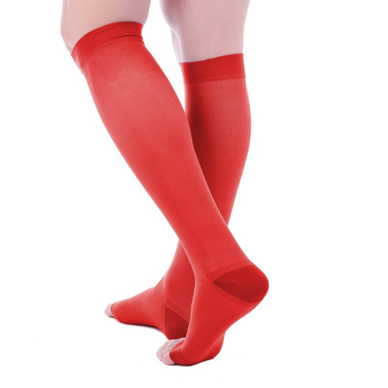 - Nuestros calcetines de compresión de punta abierta para mujer son de material de alta calidad, la compresión de grado médico apoya la recuperación de embolismo o TVP, venas varicosas, férulas de espinillas, eficaz para pacientes postrados en cama y movilidad limitada.