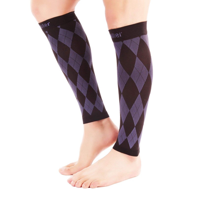 Doc Miller Calf Compression Sleeve Men Women 20-30mmhg Argyle Shin Splint, Varicose Vein, Travel Leg Cramps Relief