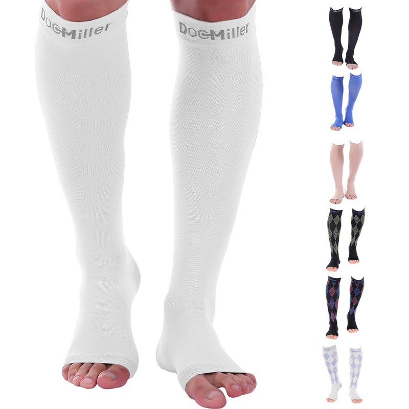 Doc Miller Open Toe Compression Socks for Men & Women, 30-40 mmHg Knee High Support, Toeless Design for Daily Leg Comfort, Breathable Nylon Spandex, 1 Pair