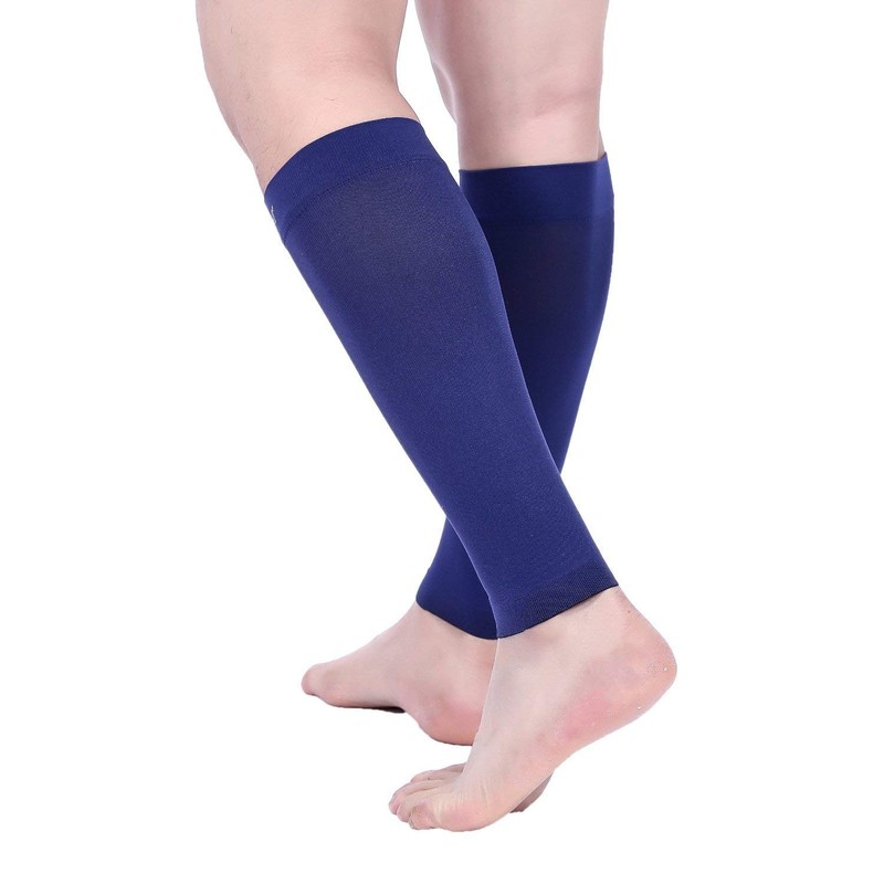 Doc Miller Premium Calf Compression Sleeve 1 Pair 20-30mmHg Graduated Support for Sports Running Circulation Recovery Shin Splints Varicose Veins (Dk Blu, M)
