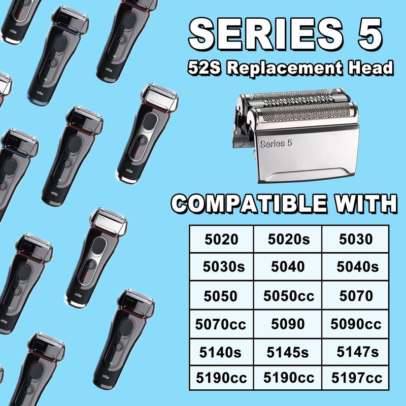 - COMPATIBILITY: This replacement foil and cutter are compatible with Braun Series 5 shavers, including models 5190cc, 5090, 5090cc, 5197cc, 5195cc, 5147s, 5145s, 5070, 5070cc, 5050, 5050cc, 5040, 5040s, 5140s, 5030, 5030s, 5020, and 5020s.